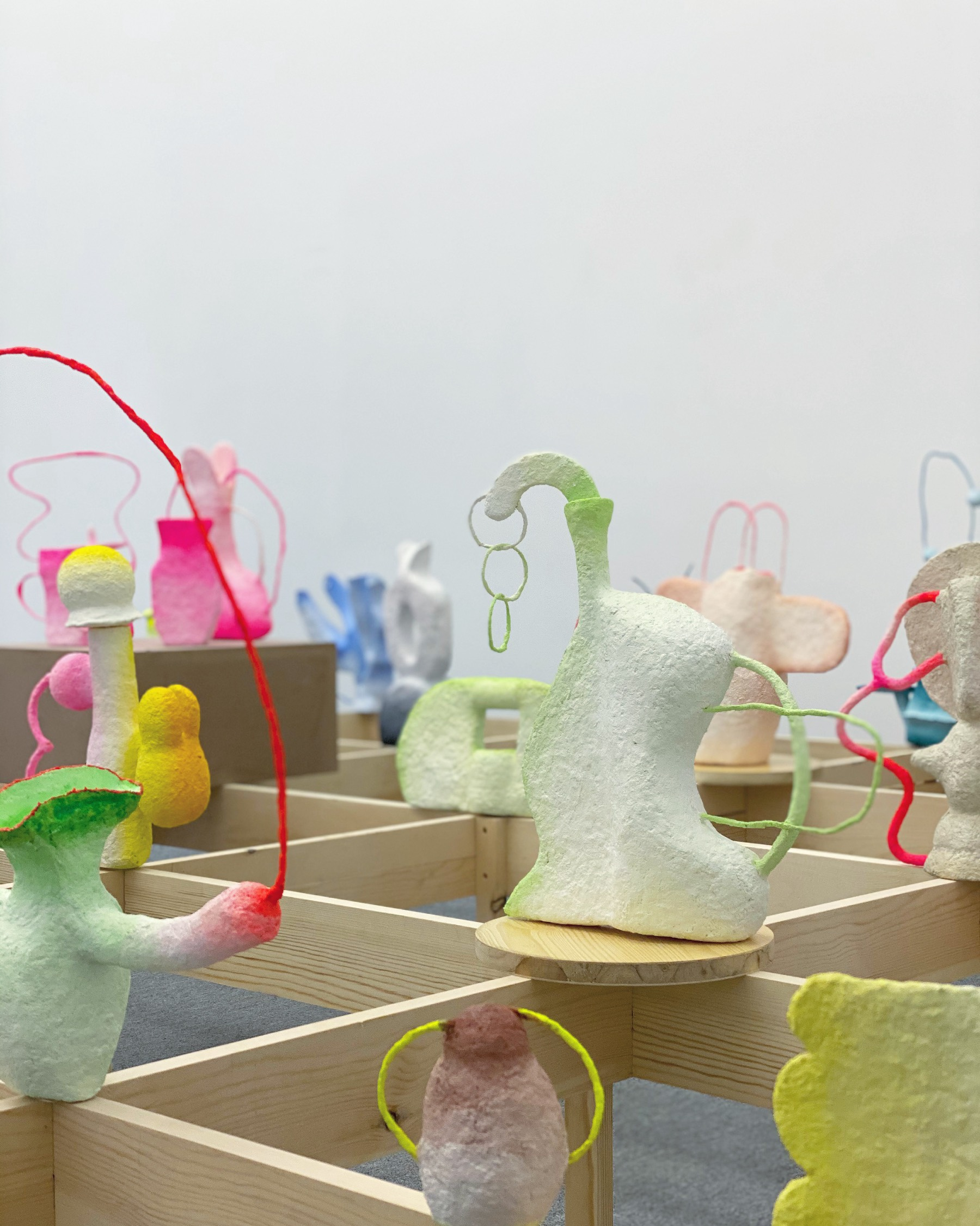 My work typically use recycled paper to make paper mâché as the main material, completed through repeated manual shaping, cutting, painting, and other processes. This is a slow but enjoyable process where I use the material’s characteristics to gradually shape it into uncertain forms. In this process, half is exploration and half is expression, resulting in delicate and unique individual objects that can be either small or large freestanding pieces. My work combines sculpture and functionality, creating forms through both intentional and unintentional actions. By exploring the material, weight, size, color, and texture, I attempt to understand how the physical world, which is usually imperceptible to humans, subtly shapes our experiences. The concept of "upcycling" is integral to my work, transforming discarded or seemingly useless materials into new, valuable creations. By repurposing materials that might otherwise become waste, the series highlights the potential beauty and functionality inherent in often overlooked or discarded objects, or serves as a metaphor for renewal.